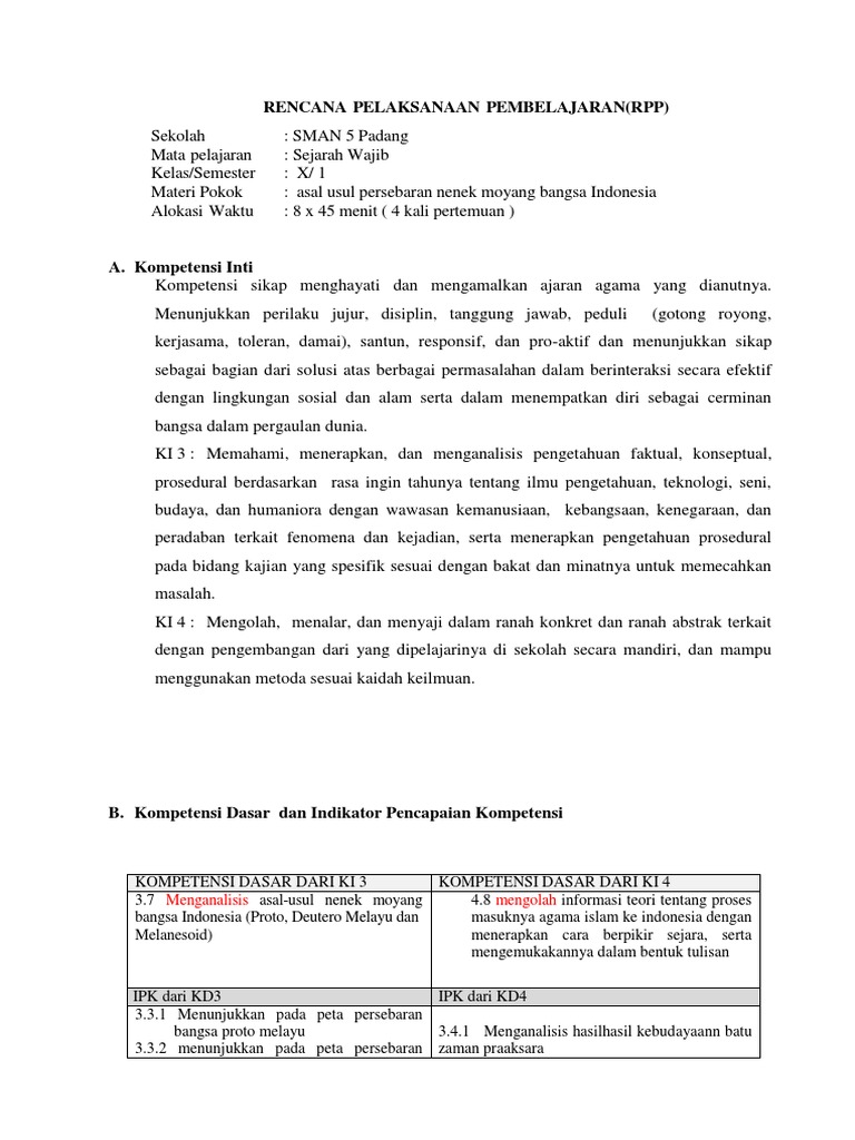 Rencana Pelaksanaan Pembelajaran Asal Usul Dan Persebaran Nenek Moyang