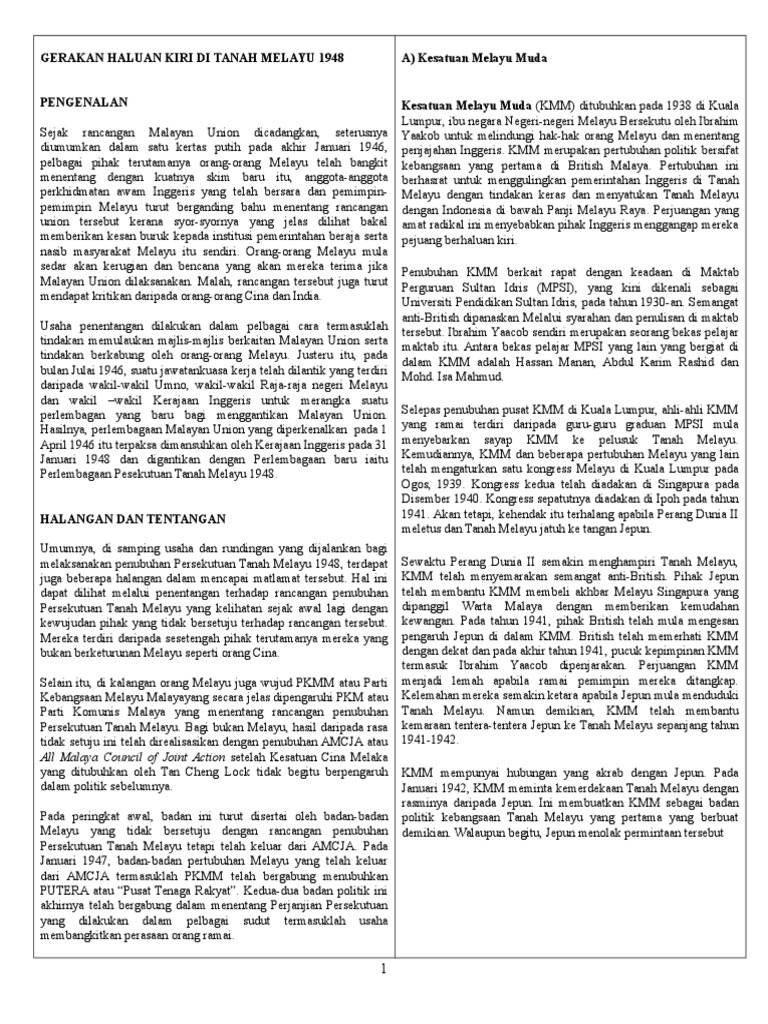 Gerakan Haluan Kiri Di Tanah Melayu 1948 Nota Kecil 2