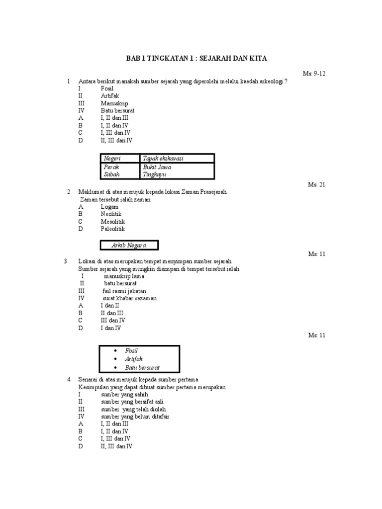 Bab 1 Tingkatan 1 Sejarah Dan Kita Negeri Tapak Ekskavasi Perak Sabah Bukit Jawa Tingkayu