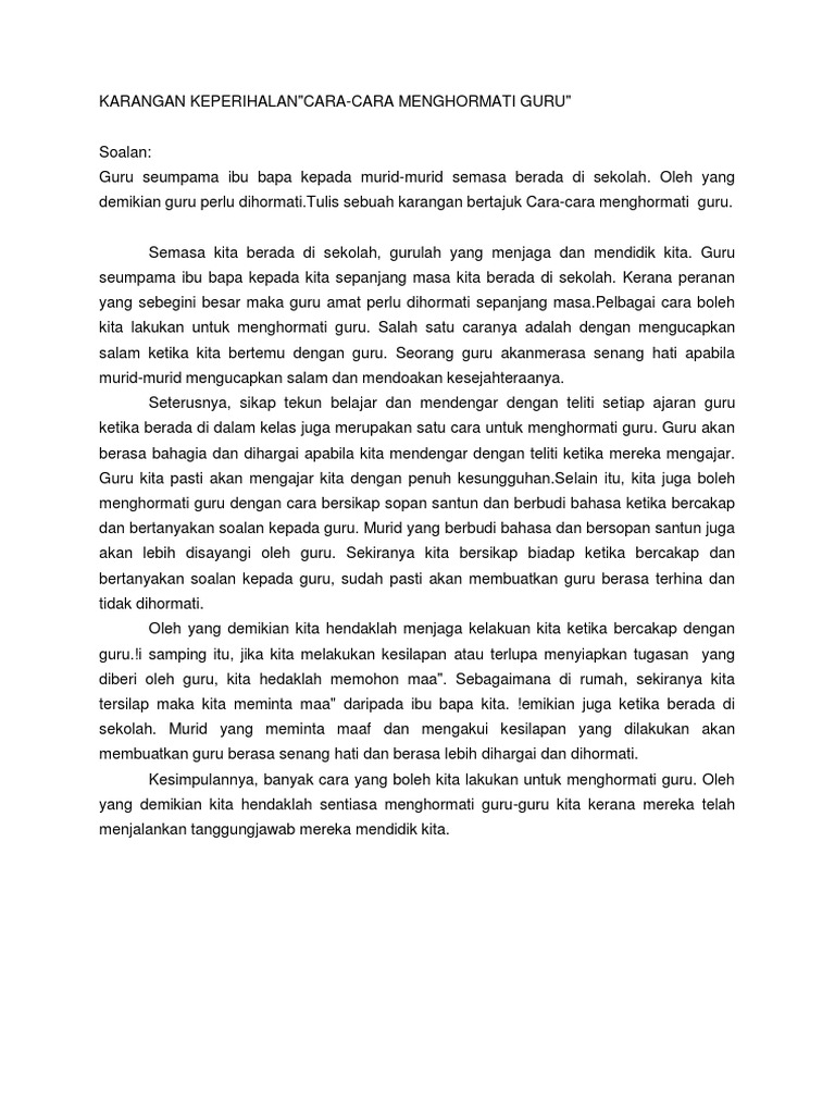 Contoh Karangan Cara Cara Menghormati Guru Karangan Keperihalan