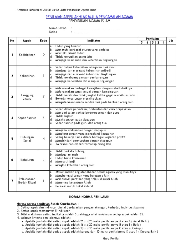 Penilaian Sikap Agama