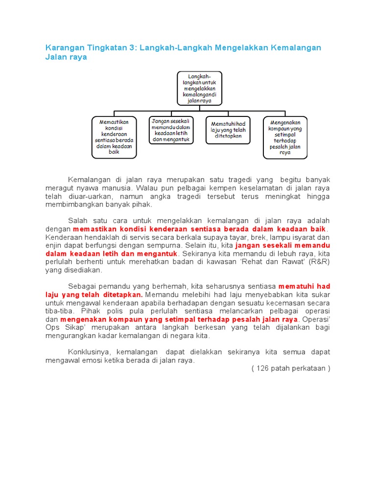 Karangan Tingkatan 3 Langkah Langkah Mengelakkan Kemalangan Jalan Raya