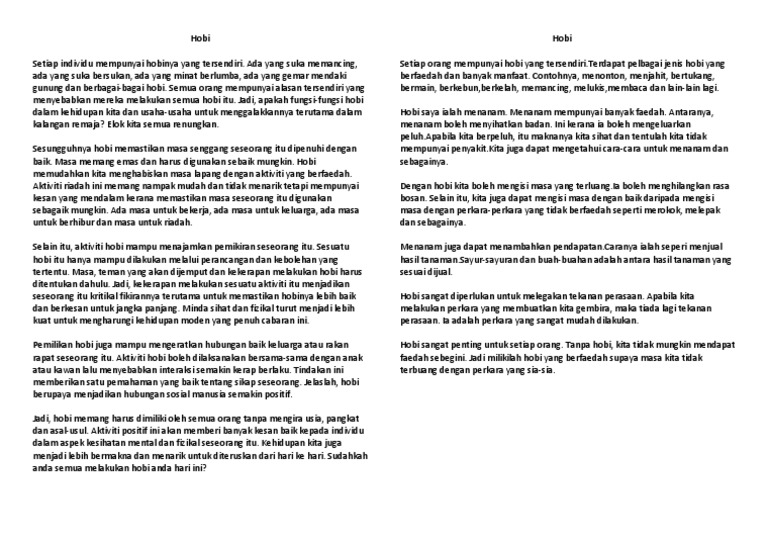 Contoh Karangan Kebaikan Aktiviti Riadah Docx