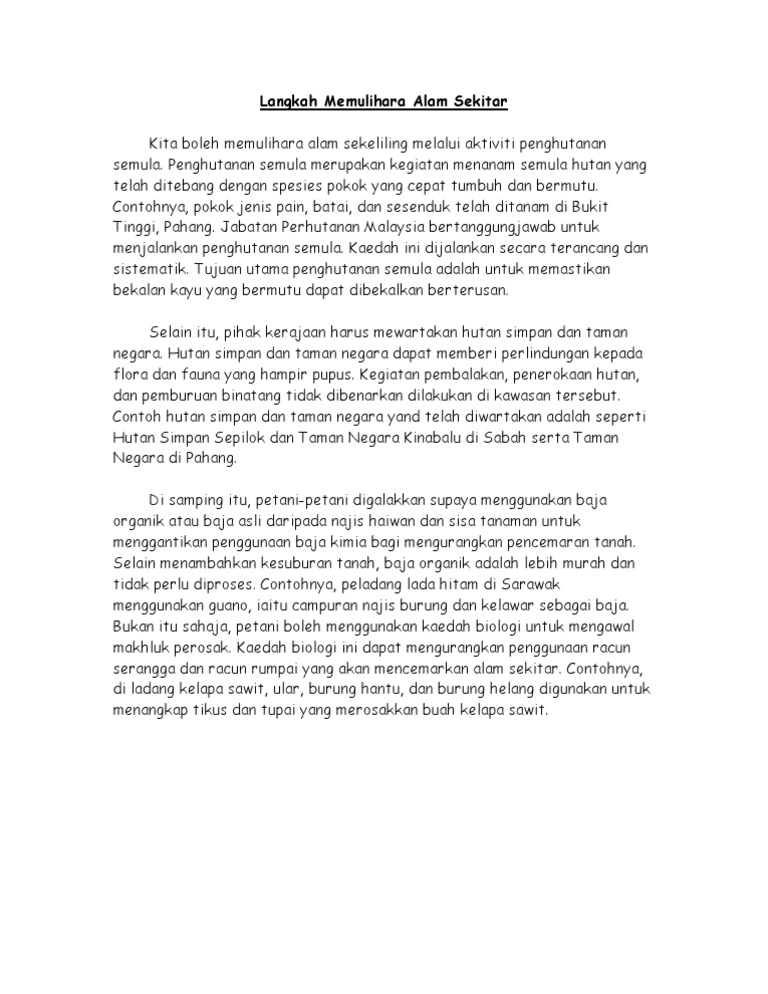 Contoh Karangan Langkah Langkah Memelihara Dan Memulihara Alam Sekitar