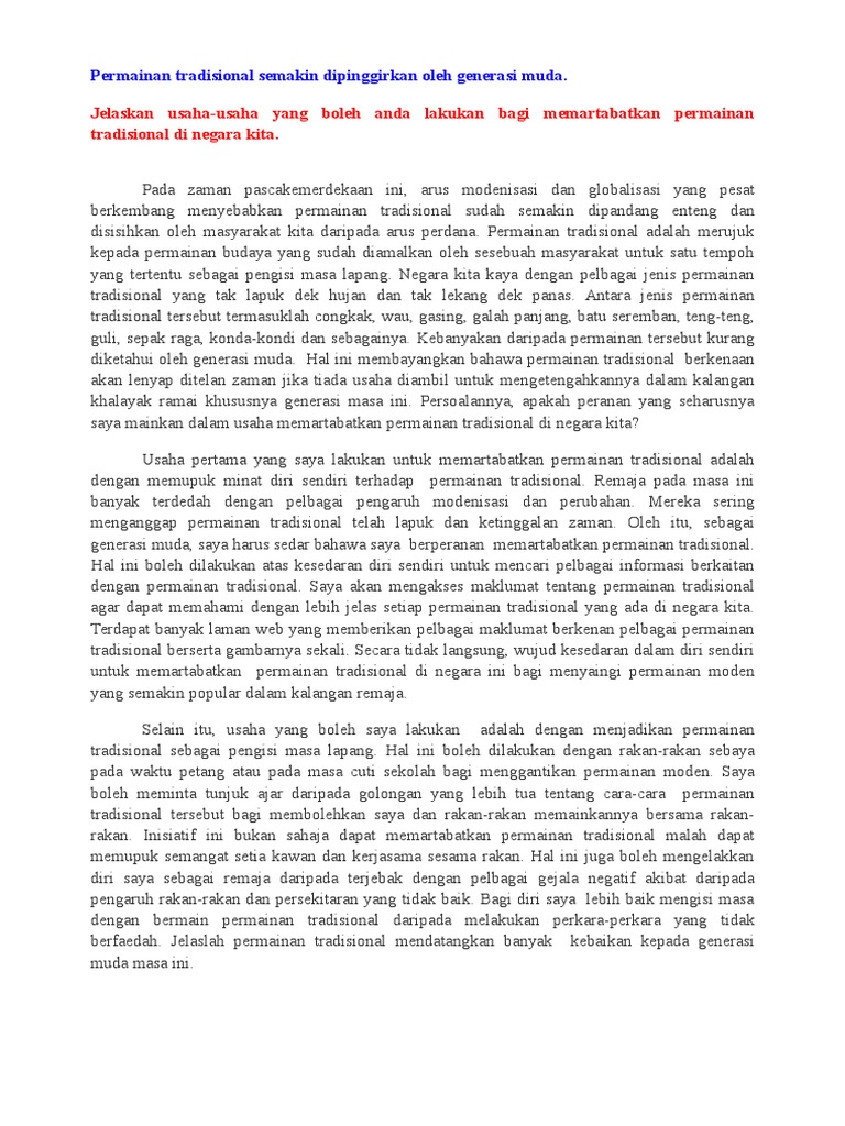 Contoh Contoh Karangan Sekolah Menengah Peranan Pelbagai Pihak Dalam Mempopularkan Permainan Tradisional