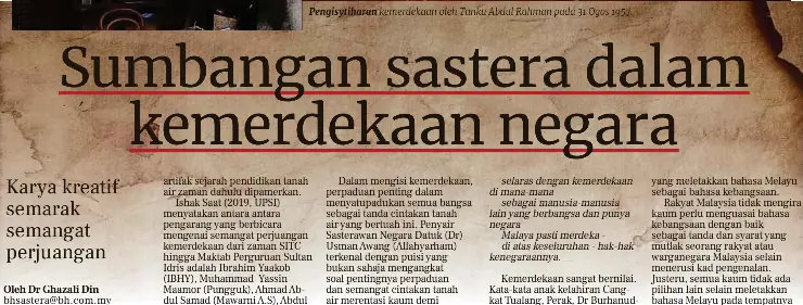 Pressreader Berita Harian 2020 08 30 Sumbangan Sastera Dalam Kemerdekaan Negara