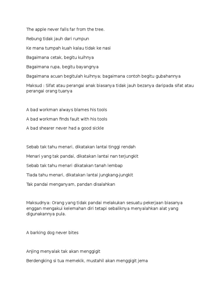 Kerul Net Several English Proverbs And The Malay Pair