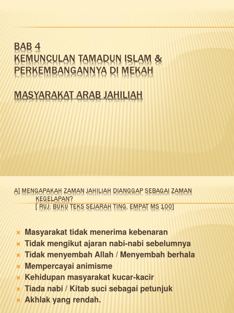 Bab 4 Kemunculan Tamadun Islam Perkembangannya Di Mekah Masyarakat Arab Jahiliah