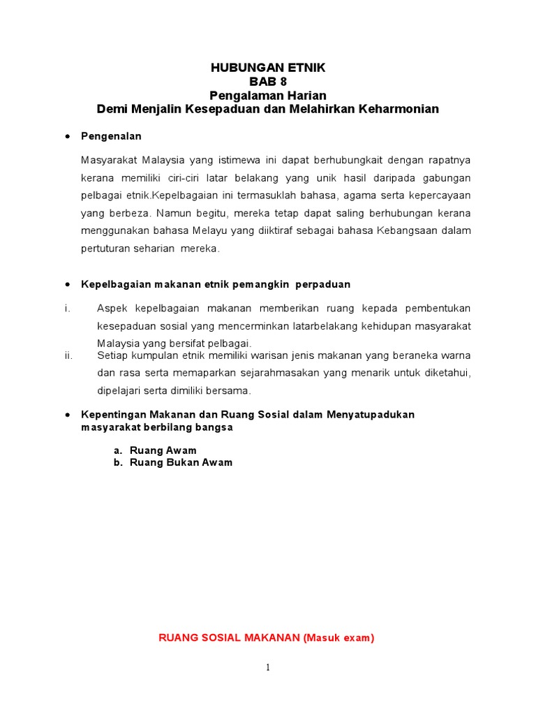 Kepelbagaian makanan etnik pemangkin perpaduan di malaysia. Kepelbagaian makanan etnik pemangkin perpaduan. Makanan pemakanan memupuk hubungan etnik 1 makanan sebagai agen perpaduan kepada sesebuah negara. Makanan merupakan salah satu perkara yang dapat menyatukan rakyat malaysia menjadi 1 bangsa malaysia. 3 bagi mempromosi kebudayaan makanan di malaysia banyak agensi telah berusaha dalam menyebarkan mesej kepada masyarakat dan juga ke seluruh dunia.