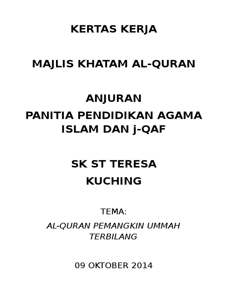 Doc Kertas Kerja Majlis Khatam Al Quran Berbuka Puasa Anjuran Persatuan Ibubapa Dan Guru Dengan Kerjasama Panitia Pendidikan Agama Islam Sk Sayed Othman Miri Aisyah Meor Academia Edu
