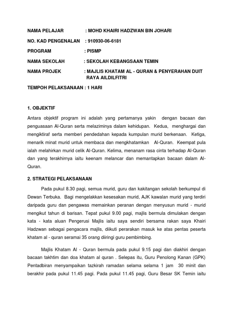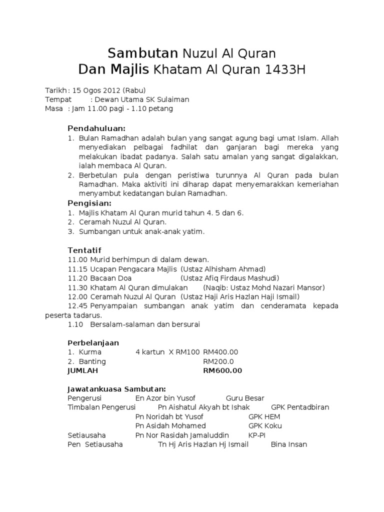 Doc Kertas Kerja Majlis Khatam Al Quran Sempena Ramadhan Al Mubarak Skp 7 2010 Nawawi Awie Academia Edu
