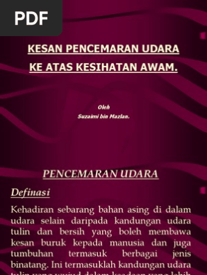 Kesan Kesan Pencemaran Udara Kepada Manusia Dan Alam Sekitar Pdf Document