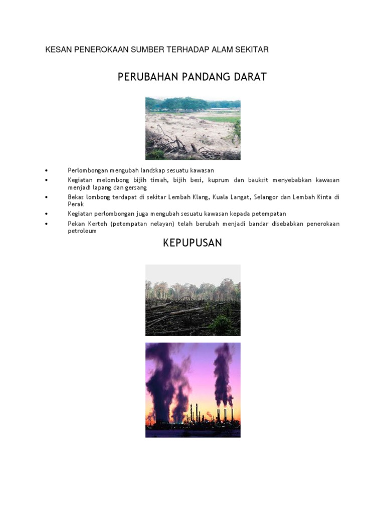 Kesan Penerokaan Sumber Terhadap Alam Sekitar Klik