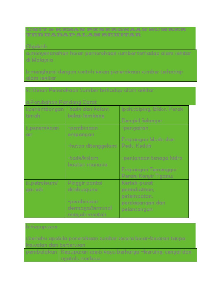 Unit 9 Kesan Penerokaan Sumber Terhadap Alam Sekitar