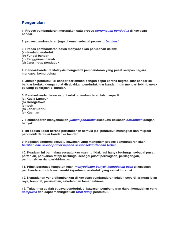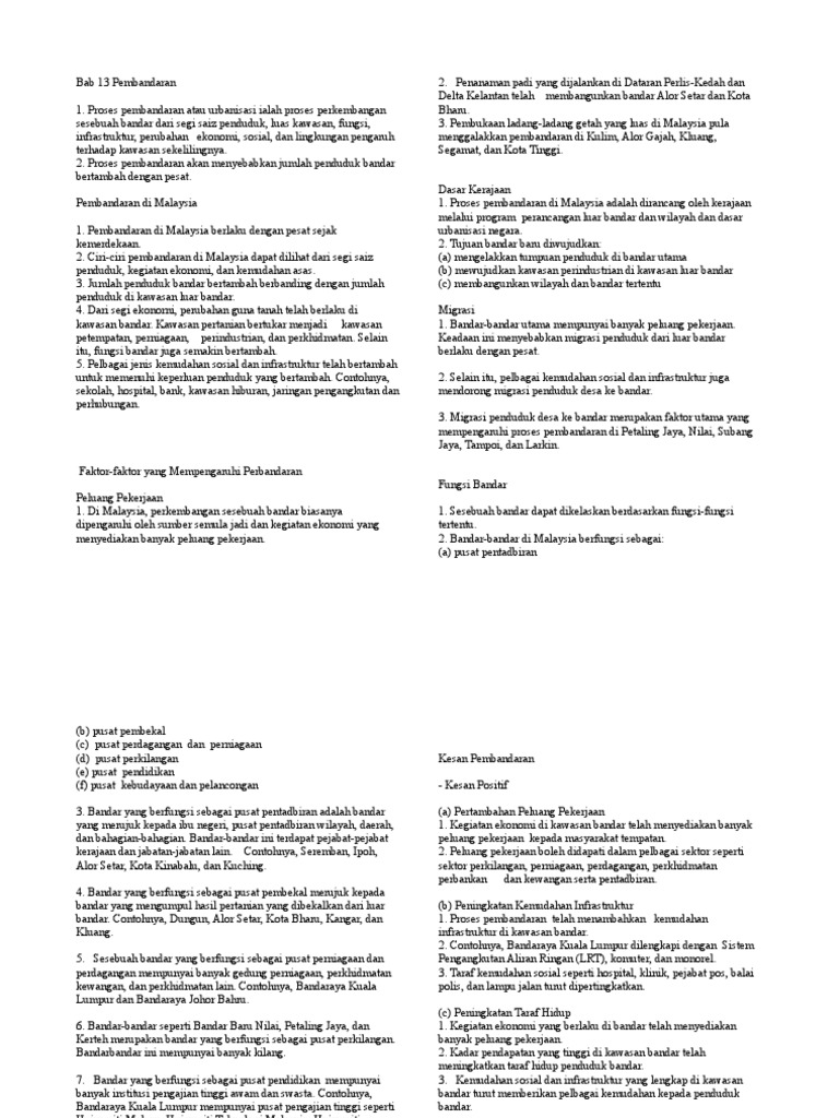 Documents Tips Geografi Tingkatan 2bab 13 Pembandaran
