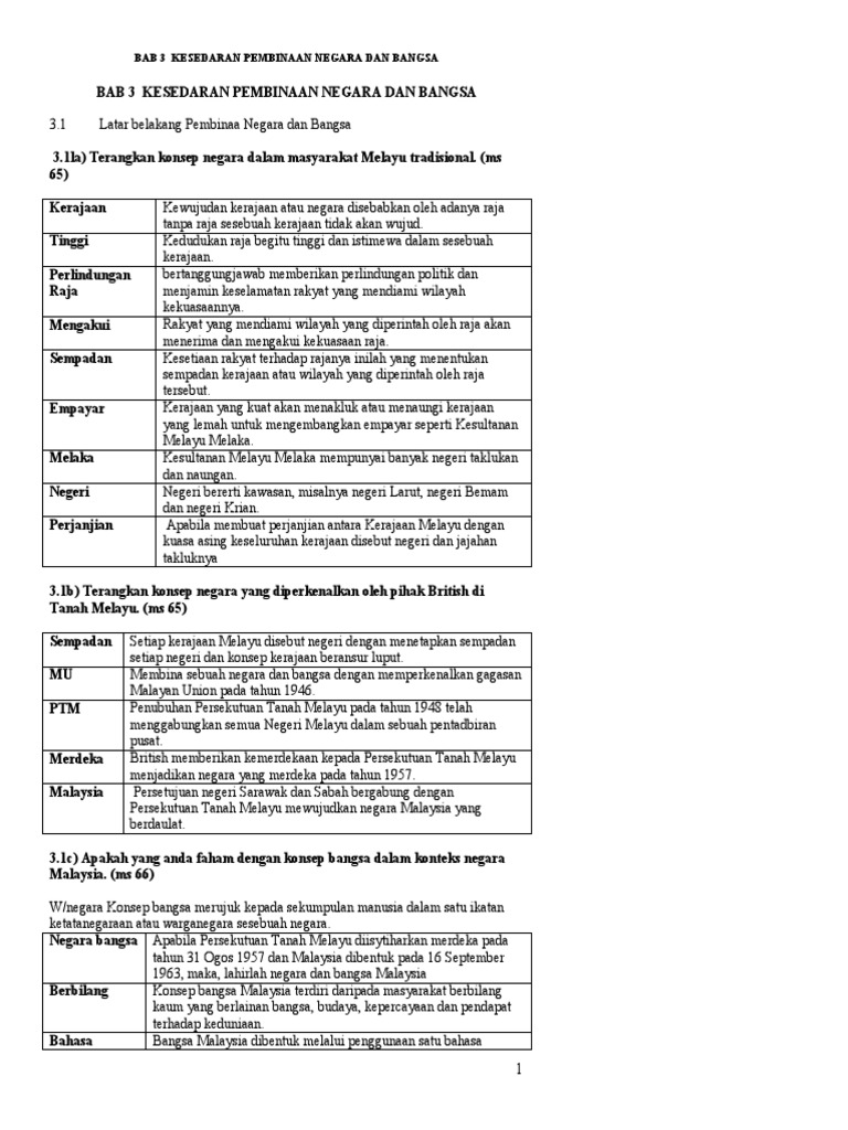 Pembinaan Negara Dan Bangsa Malaysia Sejarah Kertas 3