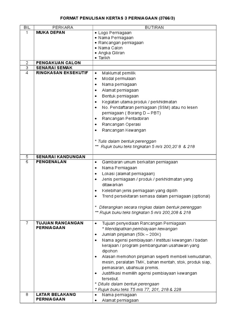 Format Penulisan Kertas 3 Perniagaan 3766 3 Rujuk Buku Teks Tingkatan 5 M S 200 20 8 218