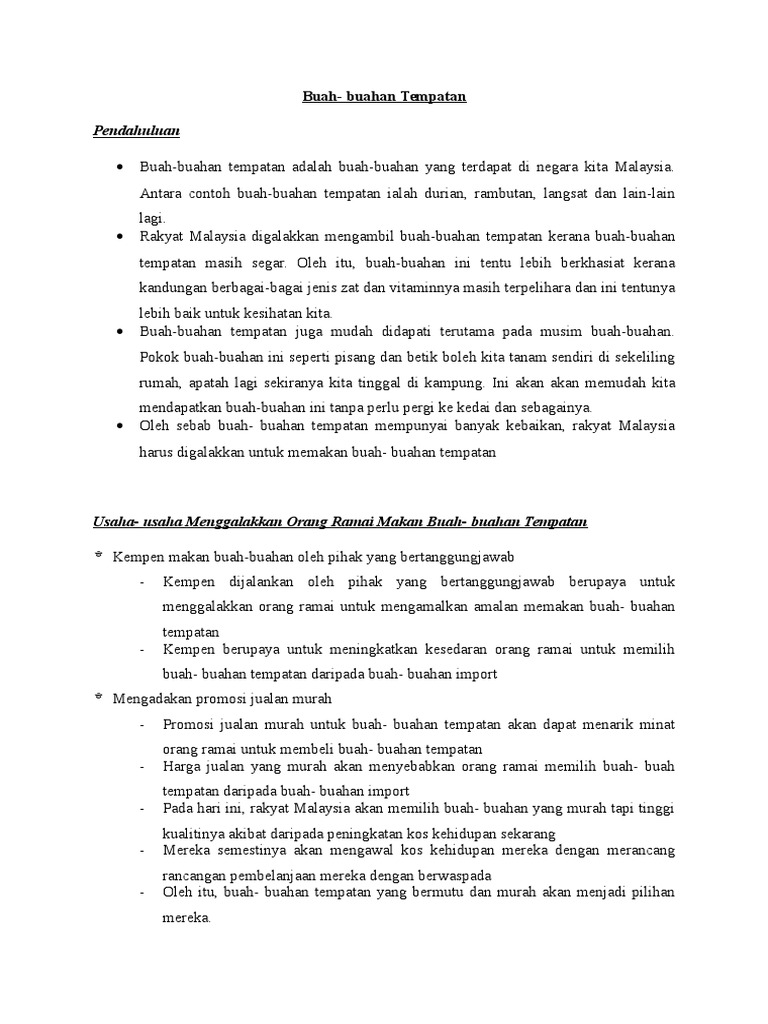 Buah Buahan Tempatan Contoh Karangan