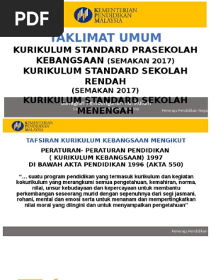 Catatan Guru Besar Taklimat Umum Kurikulum Standard Prasekolah Kebangsaan Semakan 2017 Kurikulum Standard Sekolah Rendah Semakan 2017 Kurikulum Standard Sekolah Menengah