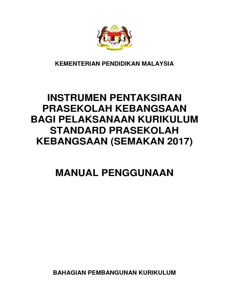 Instrumen Pentaksiran Prasekolah Kebangsaan Bagi Pelaksanaan Kurikulum Standard Prasekolah Kebangsaan Semakan 2017