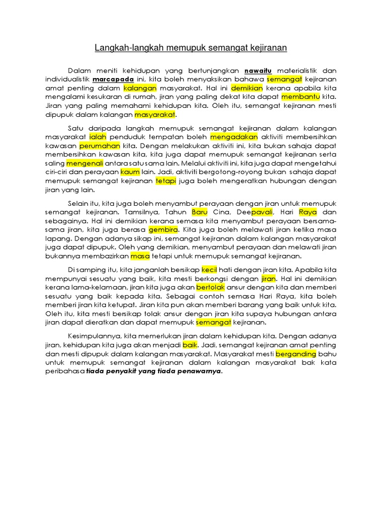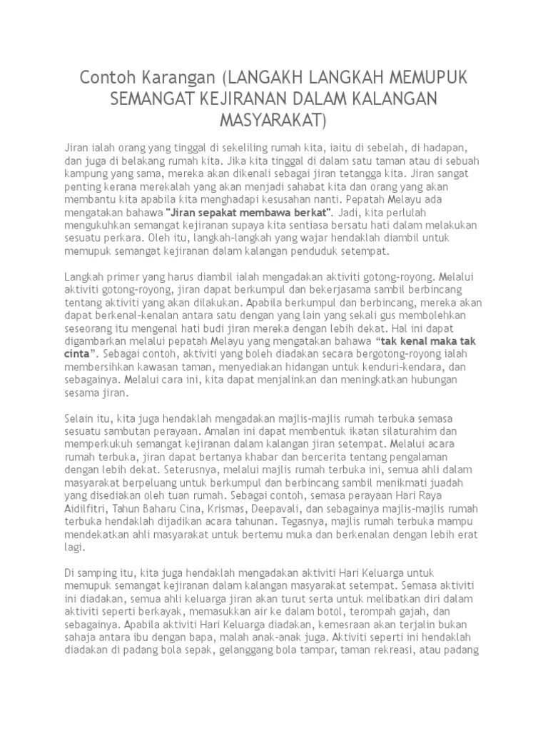 Contoh Karangan Svm Langkah2 Memupuk Semangat Kejiranan Docx