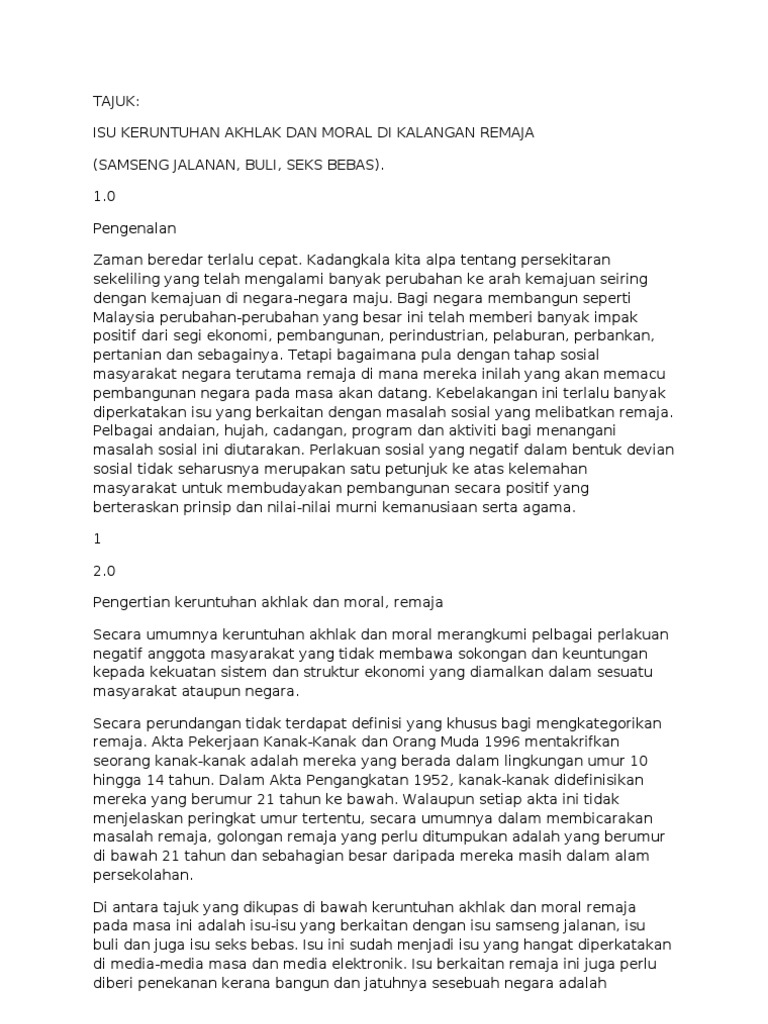 Doc Isu Moral Dan Keruntuhan Akhlak Remaja Mohd Noor Fazlan Azizan Academia Edu