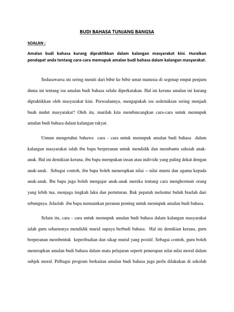 Kepentingan Budi Bahasa Dalam Masyarakat Malaysia Pdf