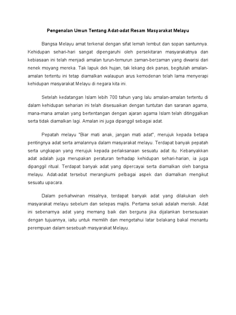 Adat Istiadat Orang Melayu