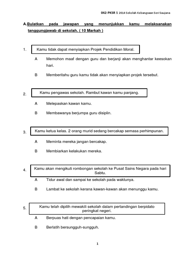 Contoh Soalan Moral Tahun 3 Kssr Rasmi H