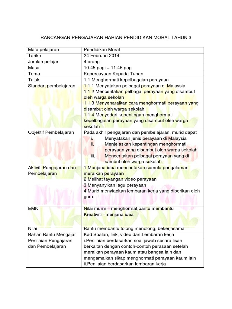 Doc Rancangan Pengajaran Harian Pendidikan Moral Tahun 3 Mem Mm Academia Edu