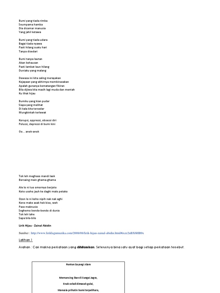 Dunia Kajian Tempatan Lagu Hijau Zainal Abidin