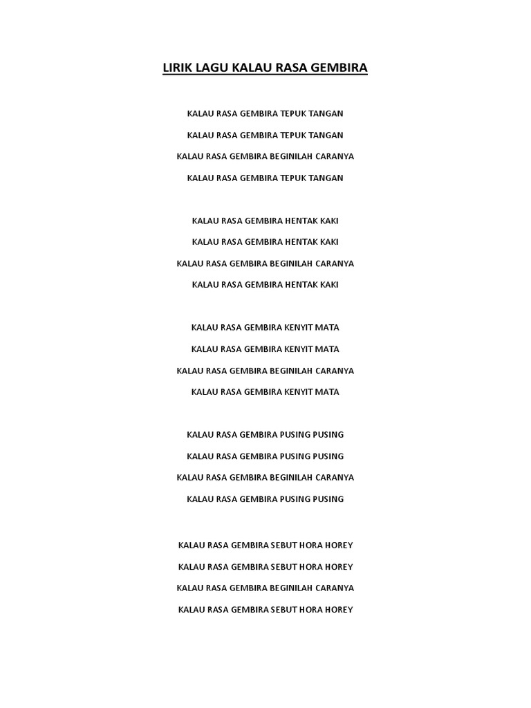 Lirik Lagu Kalau Rasa Gembira